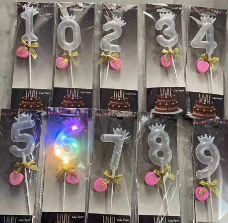 CANDELA DE NUMERO CON LUZ DE 0-9 10*27cm XY-0461(600)
